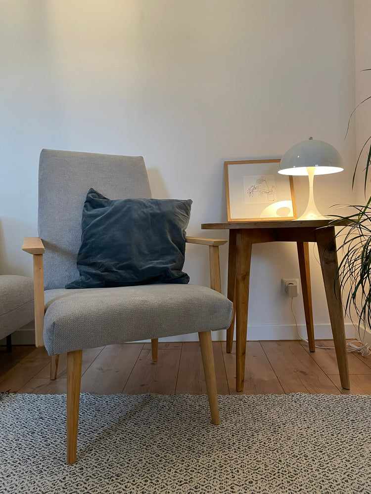 Quadratischer Beistelltisch in elegantem Grüngrau