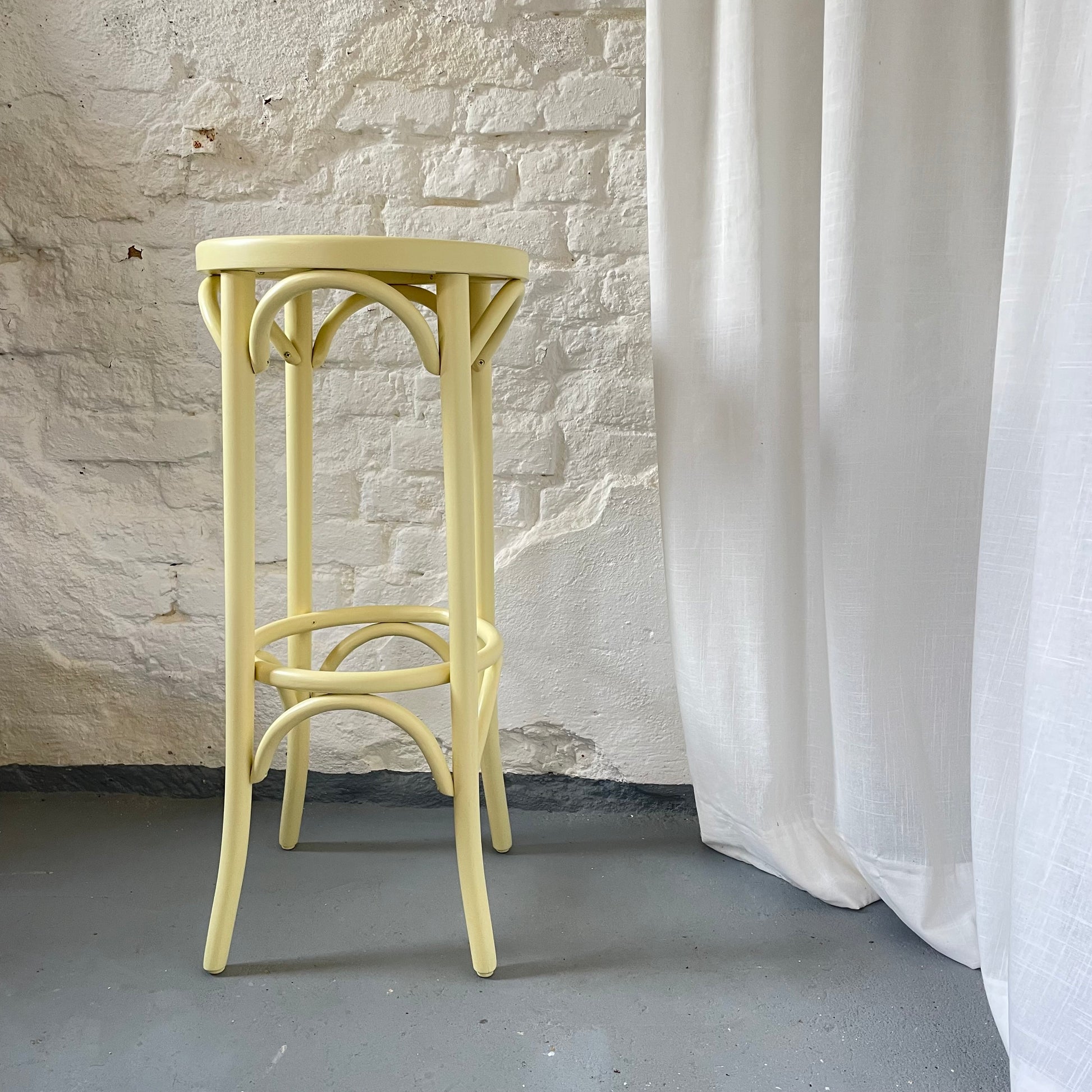 Vintage Barhocker aus Bugholz Buche – buttergelb, stilvoll & nachhaltig