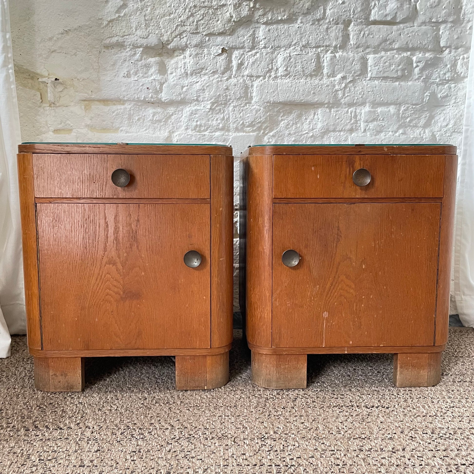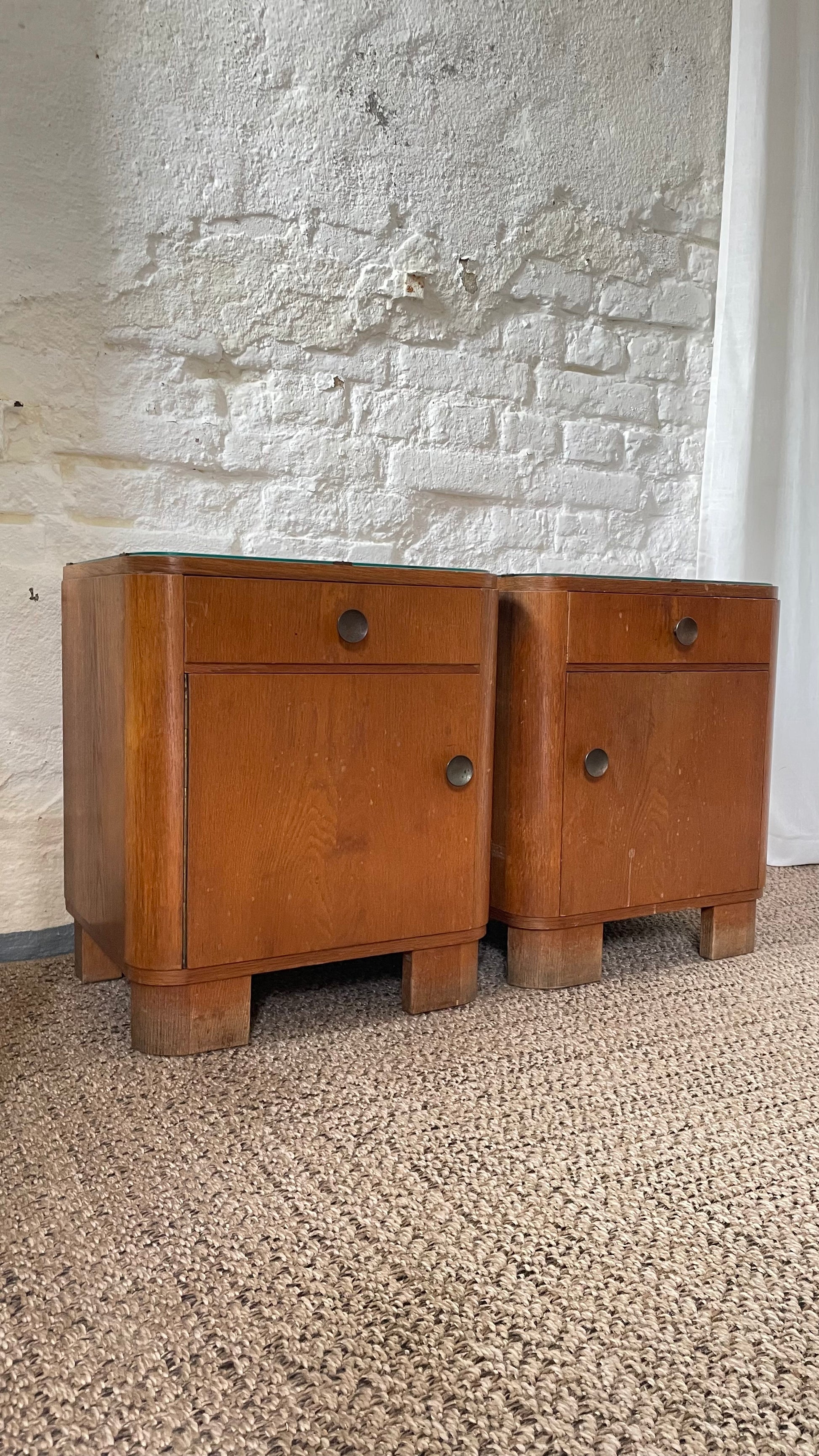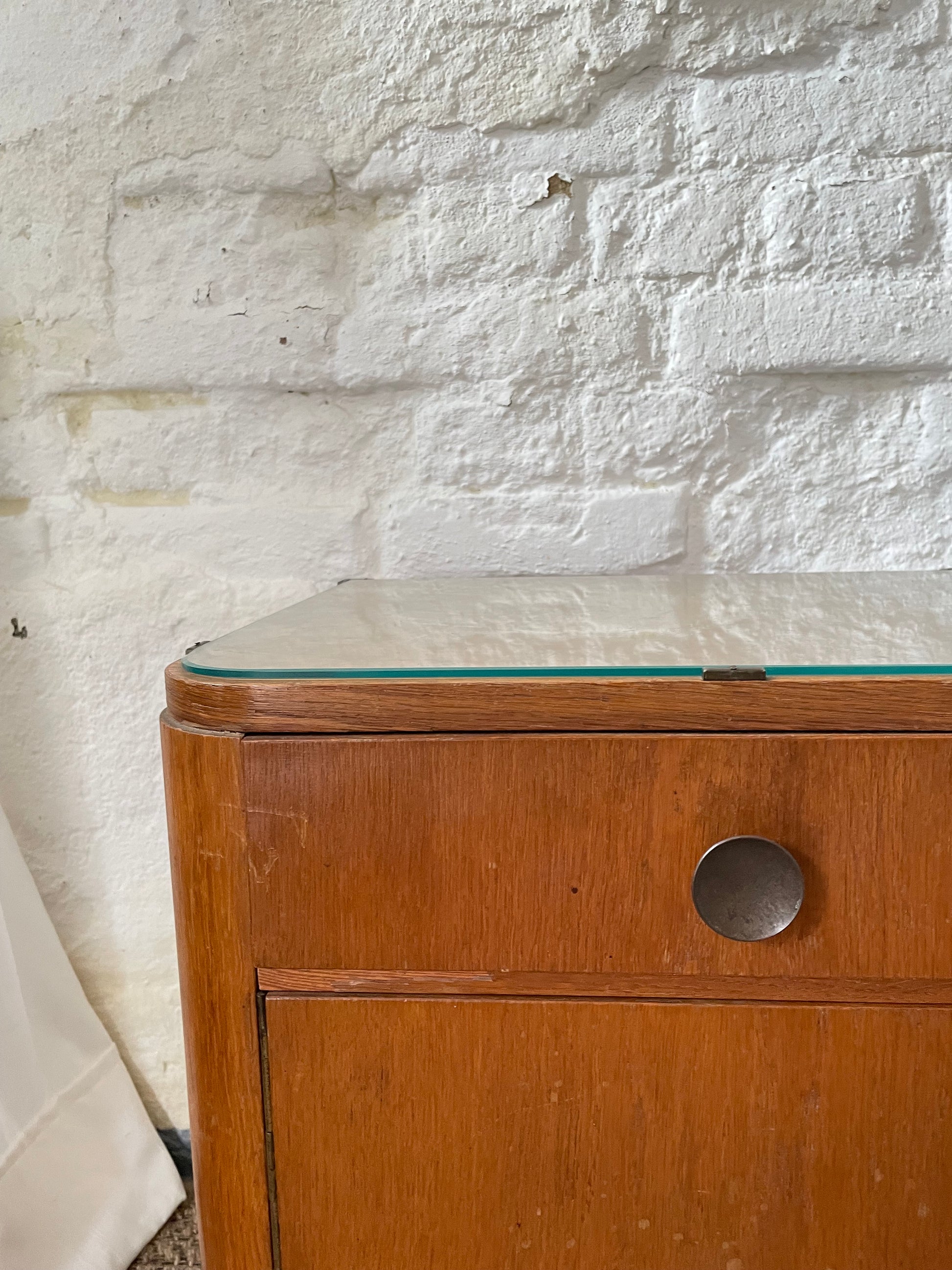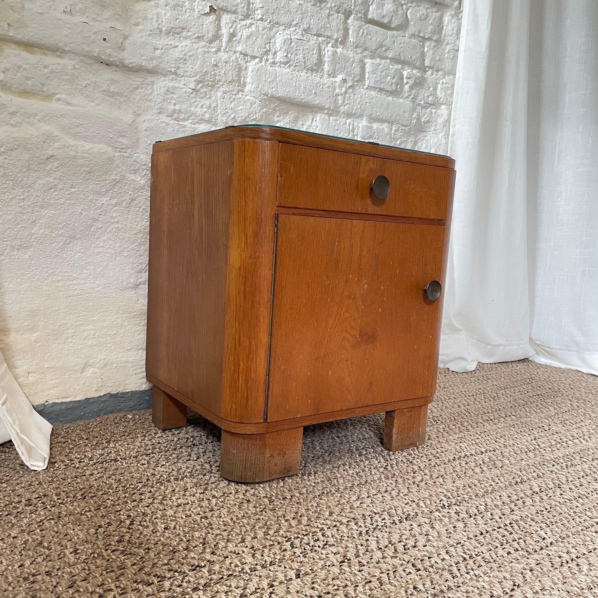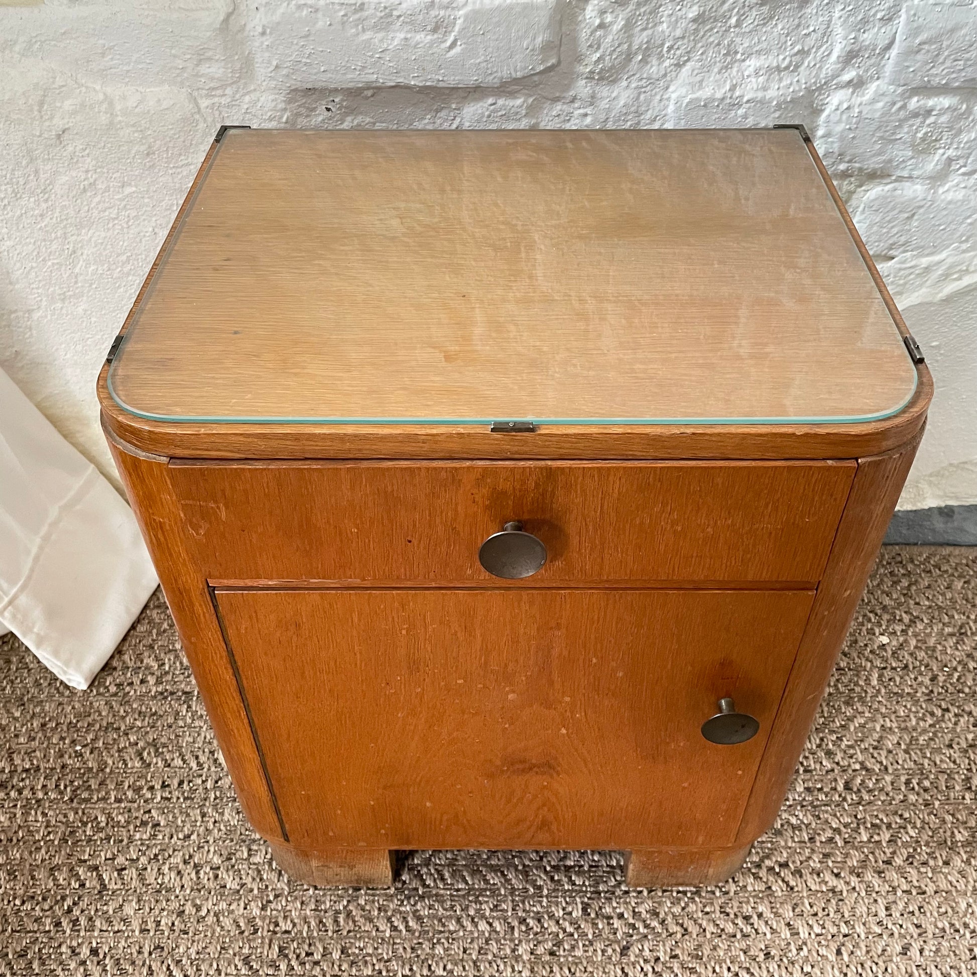 Nachttisch aus den 50er Jahren – Vintage-Unikat aus Massivholz mit Glasplatte - Aufbereitung nach Wunsch