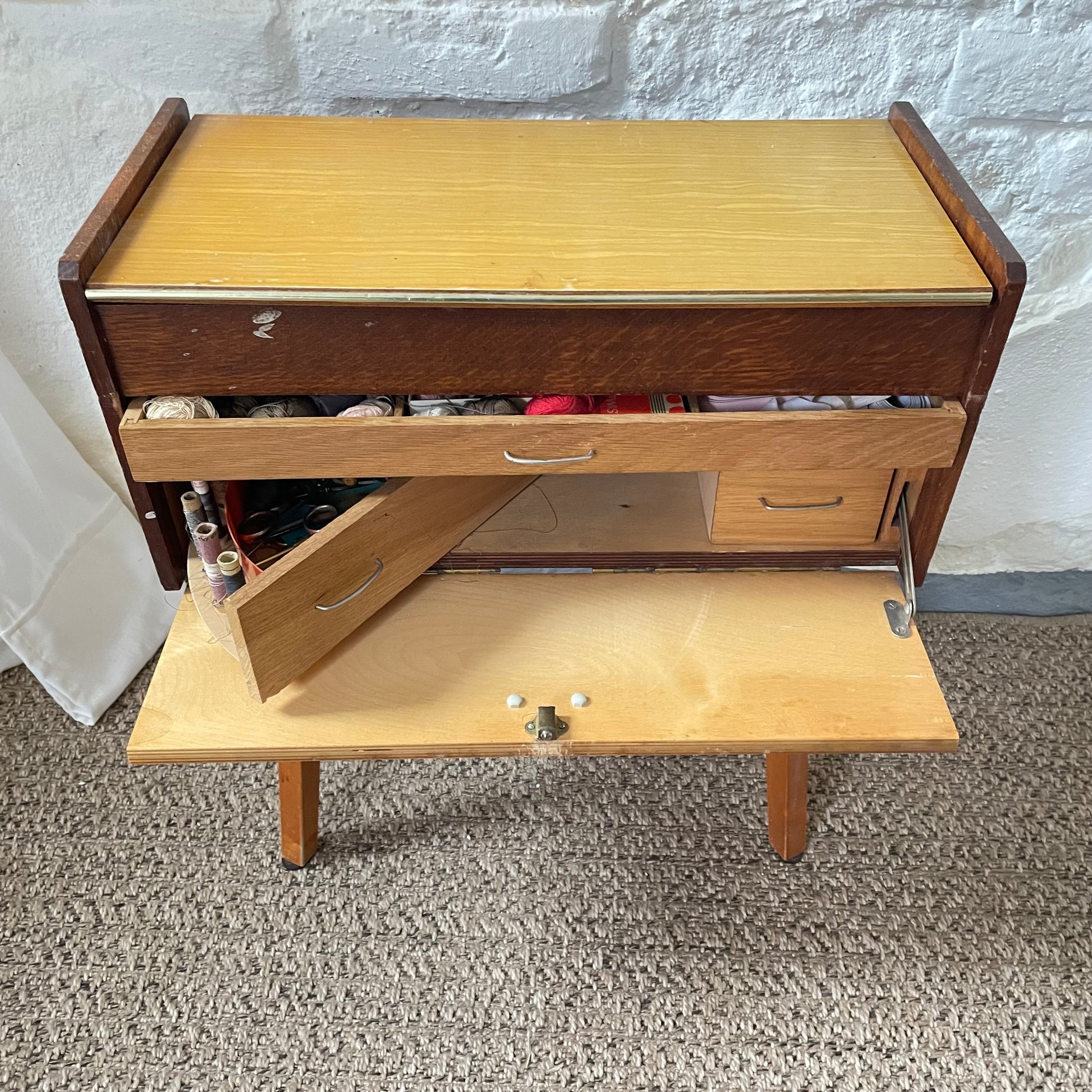 Schränkchen für Nähzubehör – Ordnungsmöbel aus Furnierholz - Aufbereitung nach Wunsch